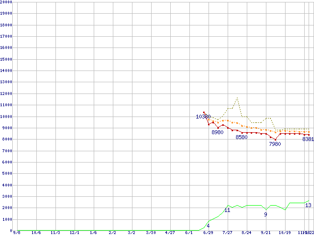 | ST3250820A (250GB,8MB)の価格推移 | | | (2005年9月8日~2006年11月22日) |