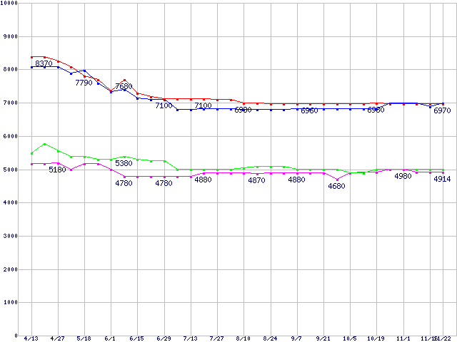 Barracuda 7200.9 (7200rpm,Ultra ATA/100)の最安値推移