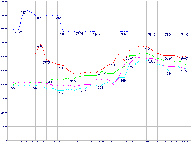 ※点線部は販売店が確認できなかった、または調査データがないことを示します