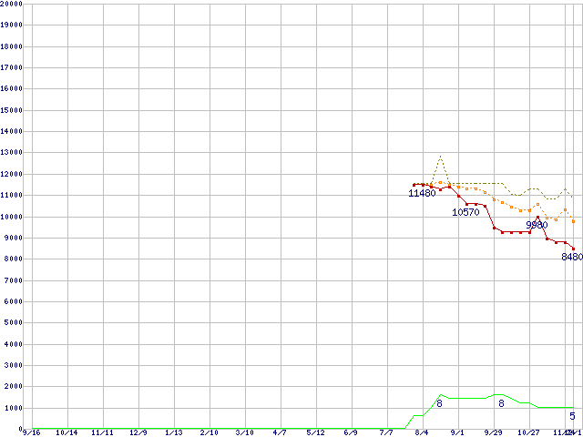 | Sempron 3000+ (1.6GHz,L2 256KB,TDP35W)の価格推移 | | | (2005年9月16日~2006年12月1日) |