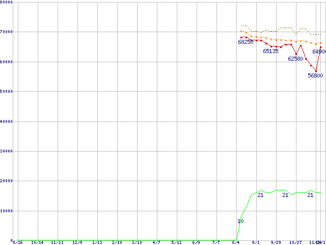 | Core 2 Duo E6700 (2.66GHz,L2 4MB)の価格推移 | | | (2005年9月16日~2006年12月1日) |