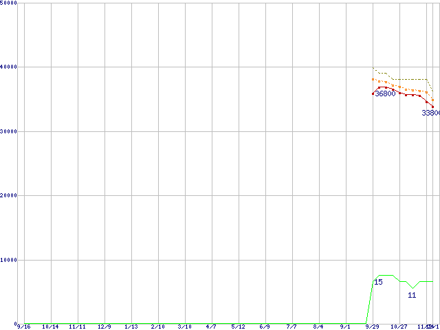 | Athlon 64 X2 5000+ (2.6GHz,L2 512KB×2) バルクの価格推移 | | | (2005年9月16日~2006年12月1日) |
