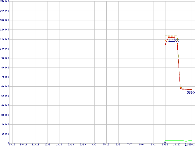 | Opteron 1218 (2.6GHz)の価格推移 | | | (2005年9月16日~2006年12月1日) |