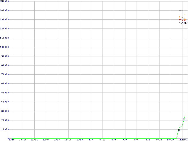| Core 2 Extreme QX6700 (2.66GHz)の価格推移 | | | (2005年9月16日~2006年12月1日) |