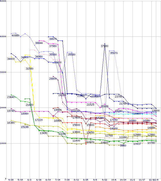 | CPU主要製品(最安値1万円~2万円未満)の最安値推移 | | | (2006年4月28日~2006年12月8日) |