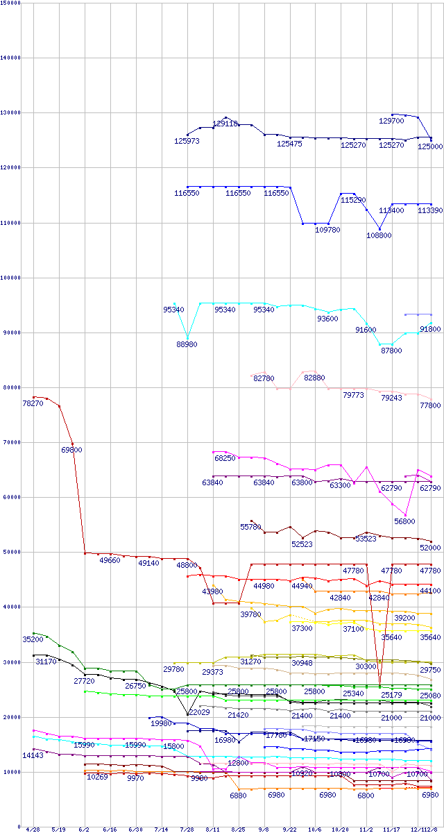 ※点線部は販売店が確認できなかった、または調査データがないことを示します
