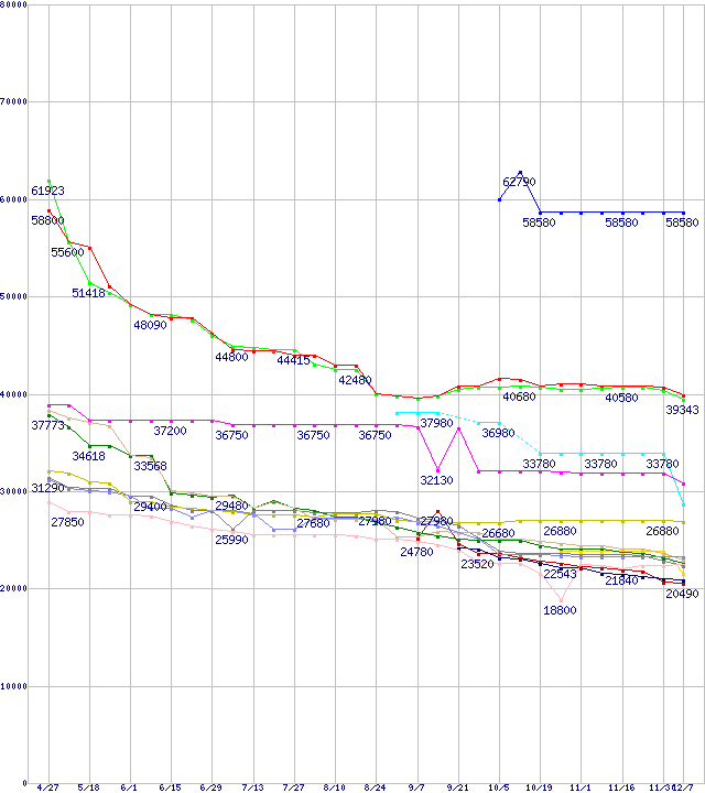 HDD主要製品の最安値推移