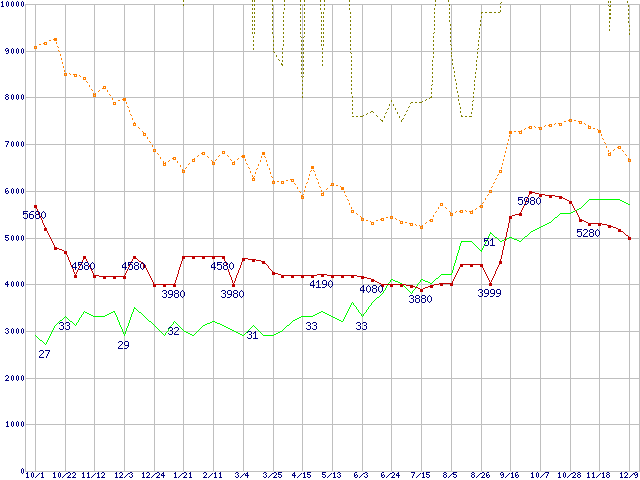 PC2-5300(DDR2-667) DDR2 SDRAM DIMMの最安値推移