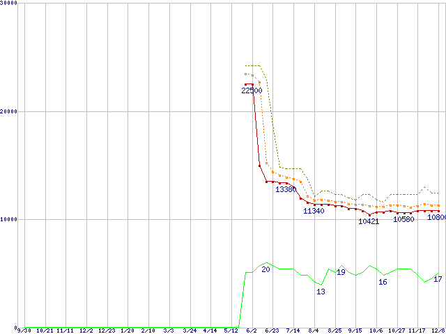 | Athlon 64 3500+ (2.2GHz,L2 512KB)の価格推移 | | | (2005年9月30日~2006年12月8日) |