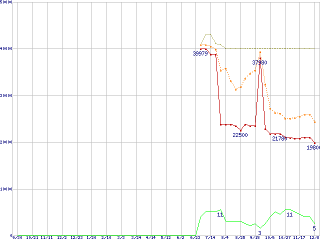 | Athlon 64 X2 4000+ (2.0GHz,L2 1MB×2)の価格推移 | | | (2005年9月30日~2006年12月8日) |