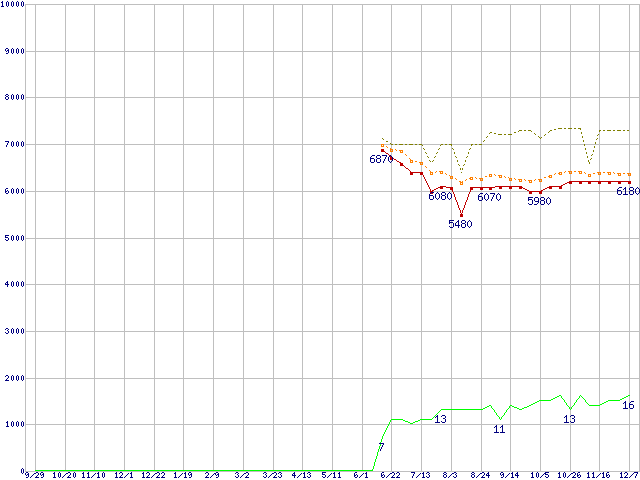| HDS721616PLAT80 (160GB)の価格推移 | | | (2005年9月29日~2006年12月7日) |