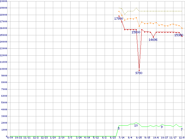 | Sempron 3400+ (1.8GHz,L2 256KB,TDP35W)の価格推移 | | | (2005年9月30日~2006年12月8日) |