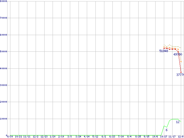 | Athlon 64 X2 5200+ (2.6GHz,L2 1MB×2)の価格推移 | | | (2005年9月30日~2006年12月8日) |