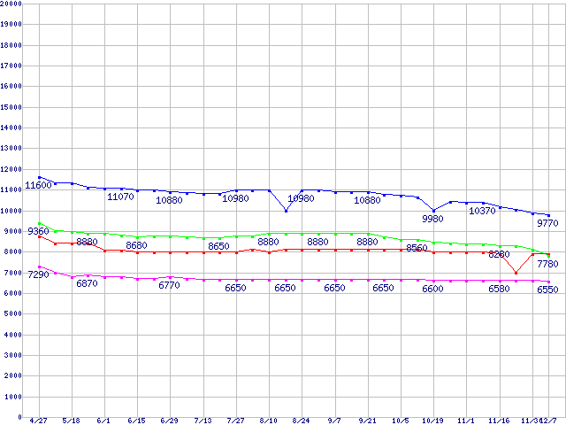 | DiamondMax 10 (7200rpm,Ultra ATA/133,RoHS指令準拠)の最安値推移 | | | (2006年4月27日~2006年12月7日) |