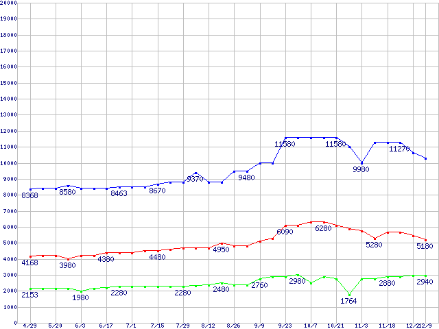 PC3200(DDR400) DDR SDRAM DIMMの最安値推移
