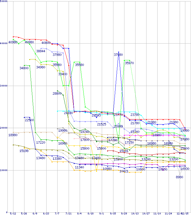 ※製品名をクリックすると個別のグラフを表示します ※点線部は販売店が確認できなかった、または調査データがないことを示します |