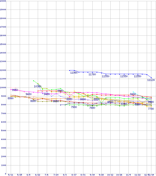 | HDD 250~300GB未満の最安値推移 | | | (2006年5月11日~2006年12月14日) |