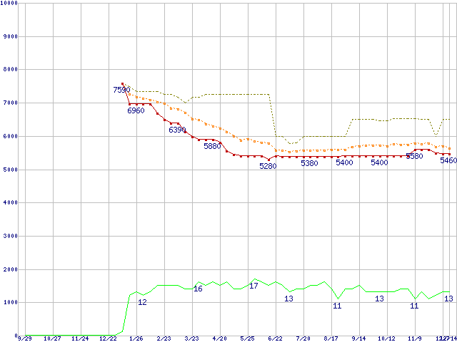 | 6V080E0 (80GB,8MB)の価格推移 | | | (2005年9月29日~2006年12月14日) |