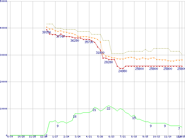 | Core Duo T2400 (1.83GHz)の価格推移 | | | (2005年9月30日~2006年12月15日) |