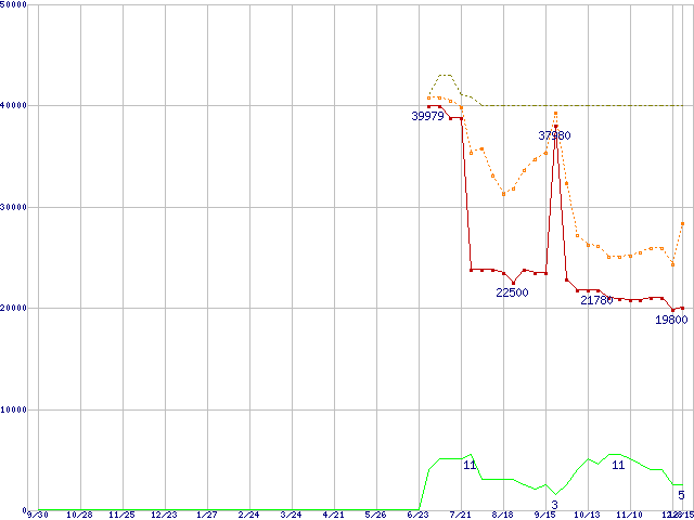| Athlon 64 X2 4000+ (2.0GHz,L2 1MB×2)の価格推移 | | | (2005年9月30日~2006年12月15日) |