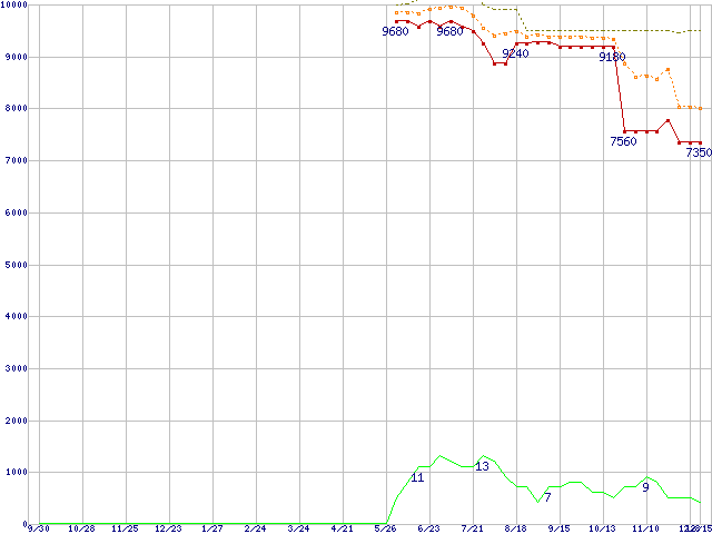 | Celeron D 352 (3.20GHz)の価格推移 | | | (2005年9月30日~2006年12月15日) |