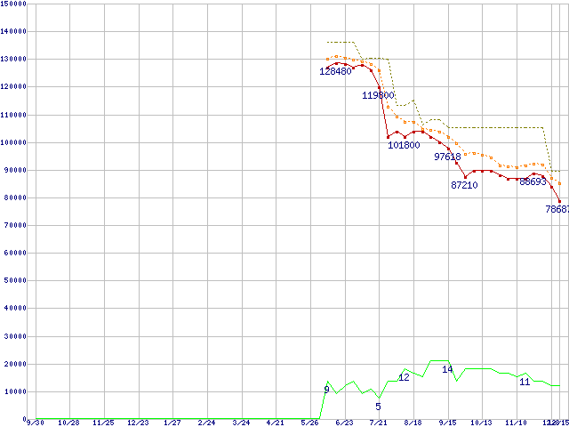 | Athlon 64 FX-62 (2.8GHz,L2 1MB×2)の価格推移 | | | (2005年9月30日~2006年12月15日) |