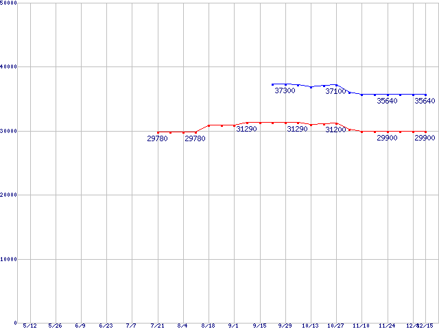 LGA771(FSB 1333MHz,Dual Core,L2 4MB)の最安値推移