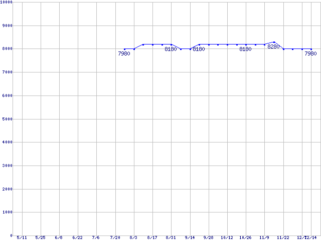 | SpinPoint P120 (7200rpm,Serial ATA II/3Gbps,8MB)の最安値推移 | | | (2006年5月11日~2006年12月14日) |