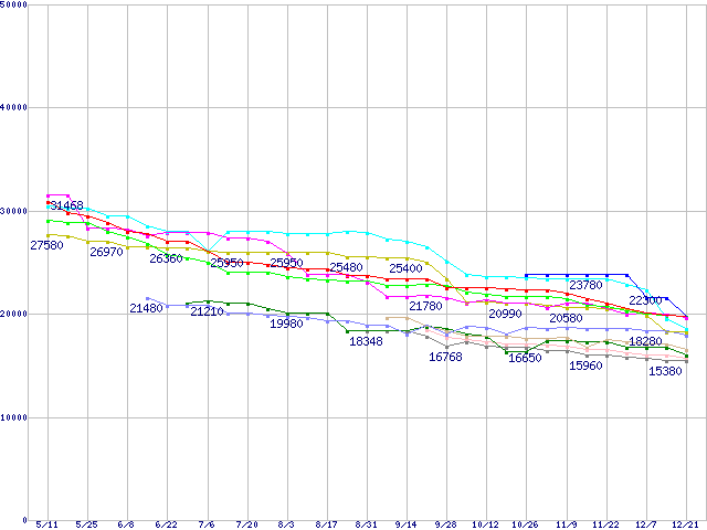 HDD主要製品(最安値1万5千円~2万円未満)の最安値推移