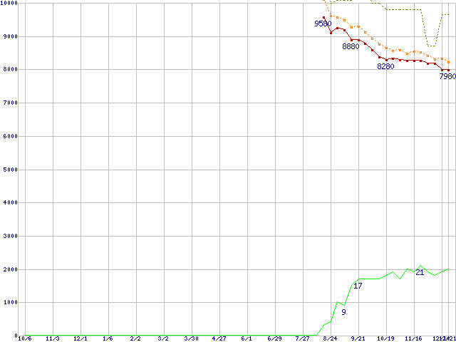 | HDT725025VLAT80 (250GB,8MB)の価格推移 | | | (2005年10月6日~2006年12月21日) |