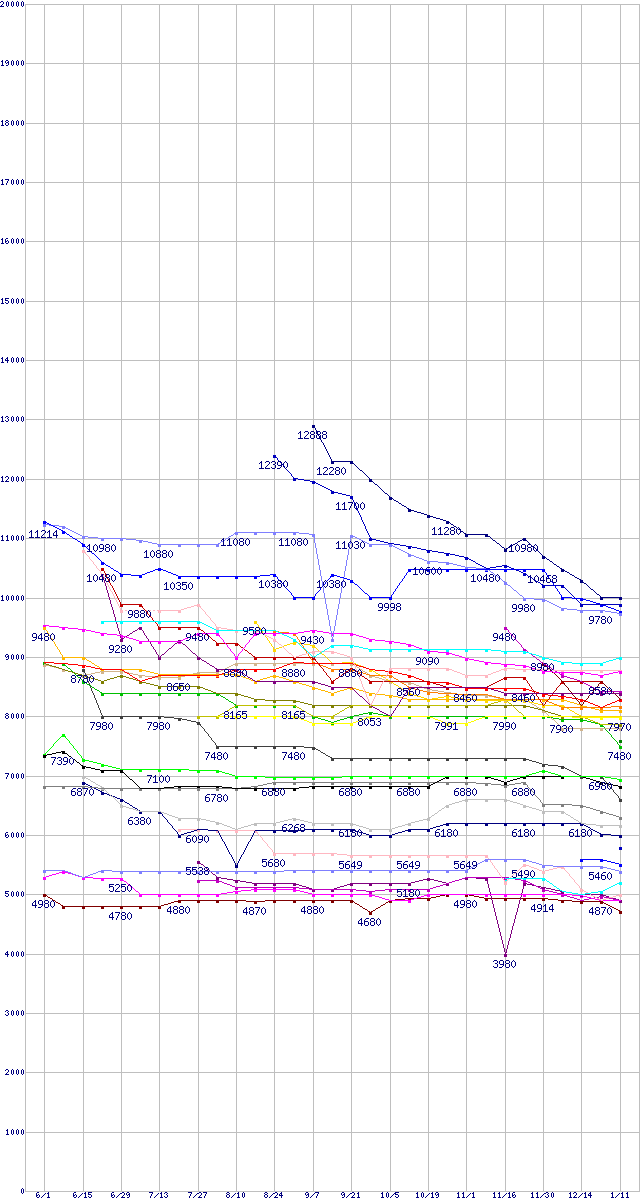 | HDD主要製品(最安値1万円未満)の最安値推移 | | | (2006年6月1日~2007年1月11日) |