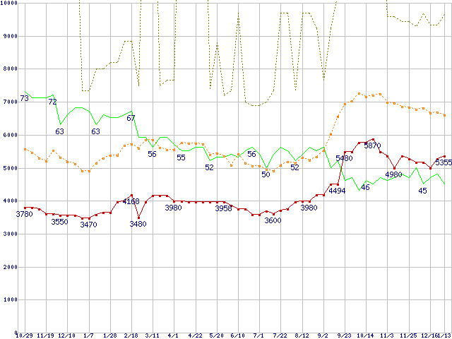 PC2-4200*(DDR2-533) DDR2 SDRAM DIMMの最安値推移
