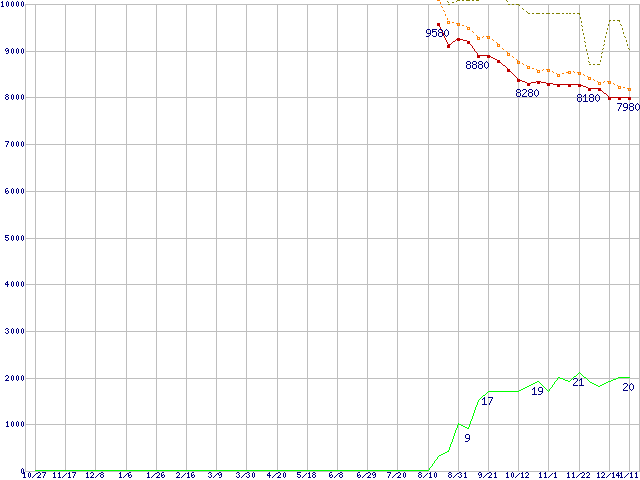 | HDT725025VLAT80 (250GB,8MB)の価格推移 | | | (2005年10月27日~2007年1月11日) |