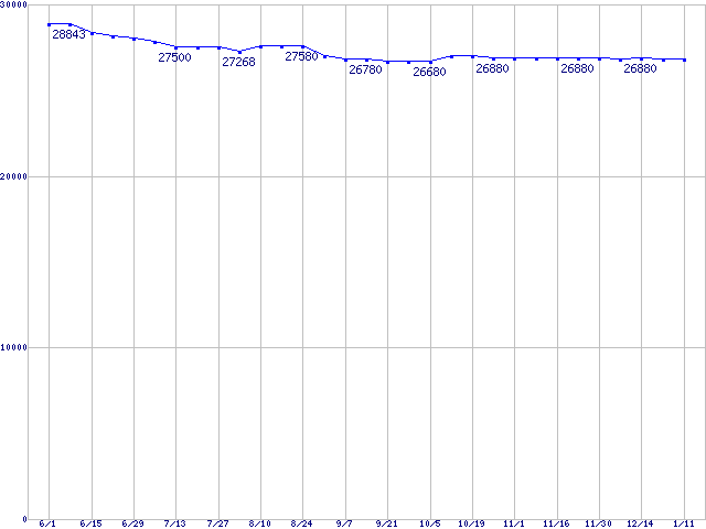 WD Raptor (10000rpm,Serial ATA/150,16MB,TLER)の最安値推移