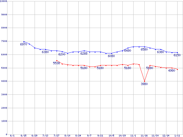 Deskstar T7K500 (7200rpm,Ultra ATA/133)の最安値推移