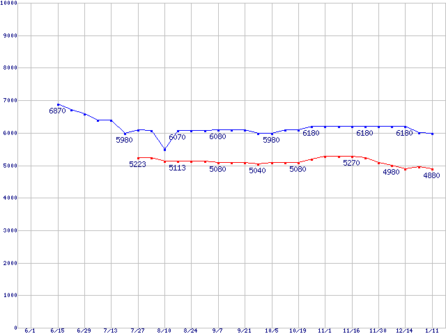 Deskstar 7K160 (7200rpm,Ultra ATA/133,8MB)の最安値推移