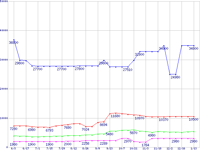 メモリ主要製品の最安値推移