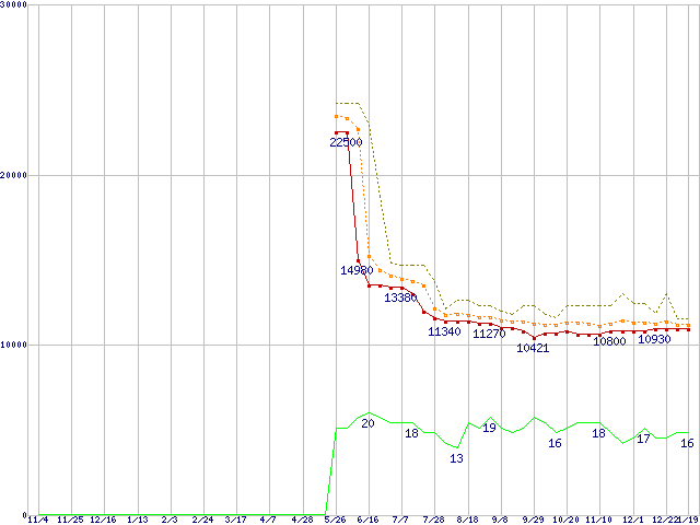 | Athlon 64 3500+ (2.2GHz,L2 512KB)の価格推移 | | | (2005年11月4日~2007年1月19日) |