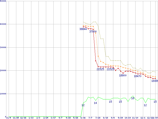 | Athlon 64 X2 3800+ (2.0GHz,L2 512KB×2,TDP65W)の価格推移 | | | (2005年11月4日~2007年1月19日) |