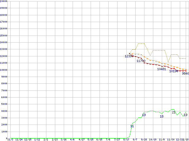 | HDT725032VLAT80 (320GB,8MB)の価格推移 | | | (2005年11月3日~2007年1月18日) |