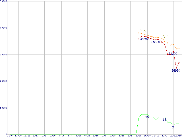 | Athlon 64 X2 5000+ (2.6GHz,L2 512KB×2) バルクの価格推移 | | | (2005年11月4日~2007年1月19日) |