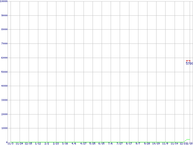 ※このグラフは過去のデータも税率5%相当に調整した税込み相当額のグラフです。 税率変更や、総額表示方式導入(2004年4月)の影響は除いています。 | | | ●凡例 | 最安値 (点線部は販売店未確認 または未調査) | 平均値 | 最高値 | ショップ数 |