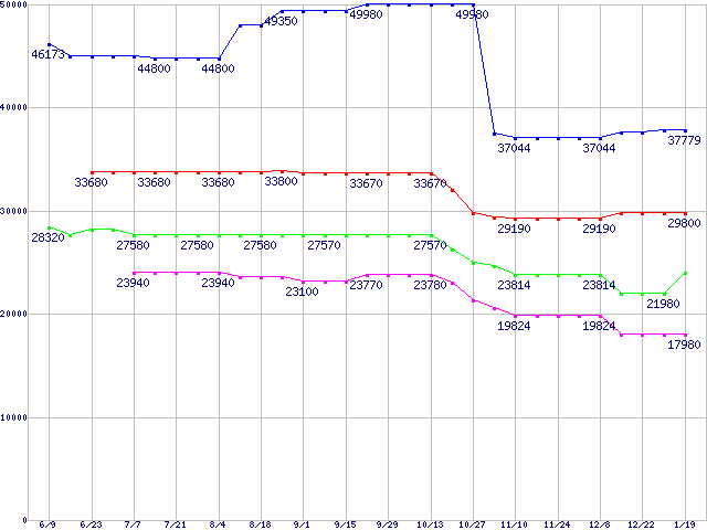 Socket A (FSB 266MHz,L2 256KB)の最安値推移