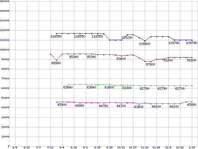 LGA771(FSB 1066MHz,Dual Core,L2 4MB)の最安値推移