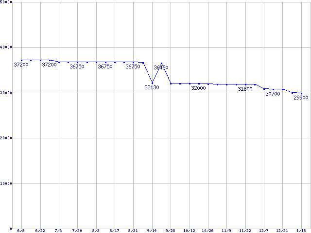 | WD Raptor X (10000rpm,Serial ATA/150,16MB,NCQ)の最安値推移 | | | (2006年6月8日~2007年1月18日) |
