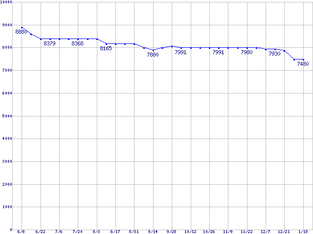 | WD Caviar[Special Edition] (7200rpm,Ultra ATA/100,8MB)の最安値推移 | | | (2006年6月8日~2007年1月18日) |