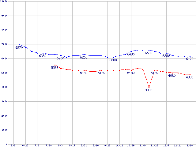 Deskstar T7K500 (7200rpm,Ultra ATA/133)の最安値推移