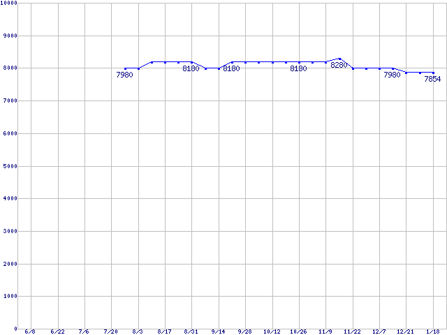 | SpinPoint P120 (7200rpm,Serial ATA II/3Gbps,8MB)の最安値推移 | | | (2006年6月8日~2007年1月18日) |