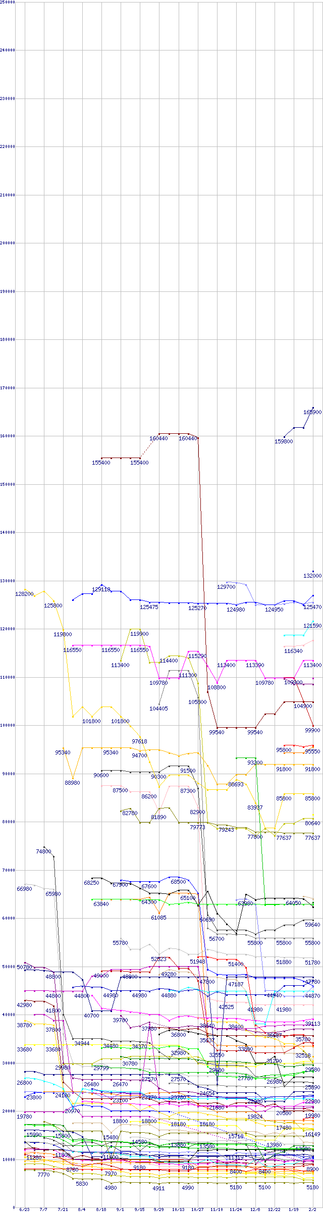 ※製品名をクリックすると個別のグラフを表示します ※点線部は販売店が確認できなかった、または調査データがないことを示します |