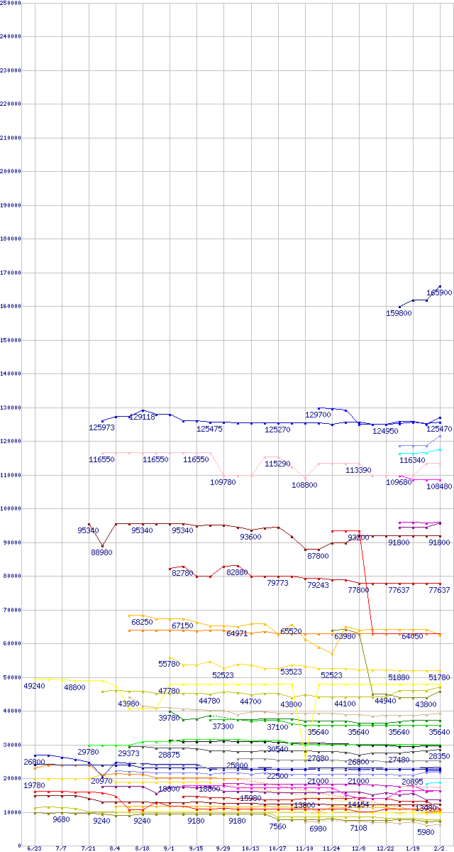 CPU主要製品(最安値6万円以上)の最安値推移